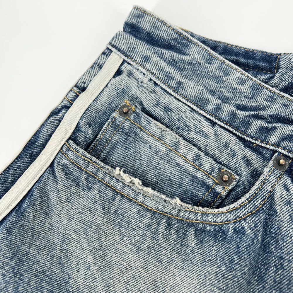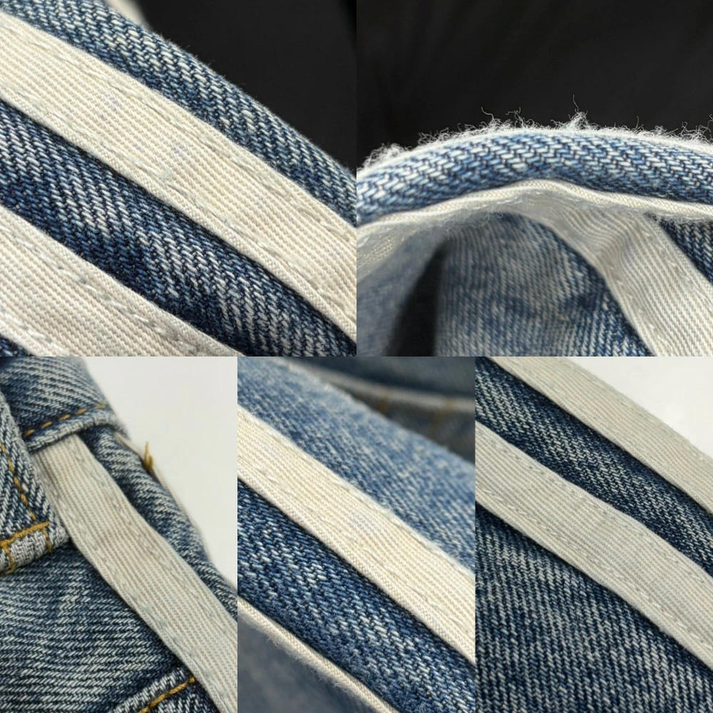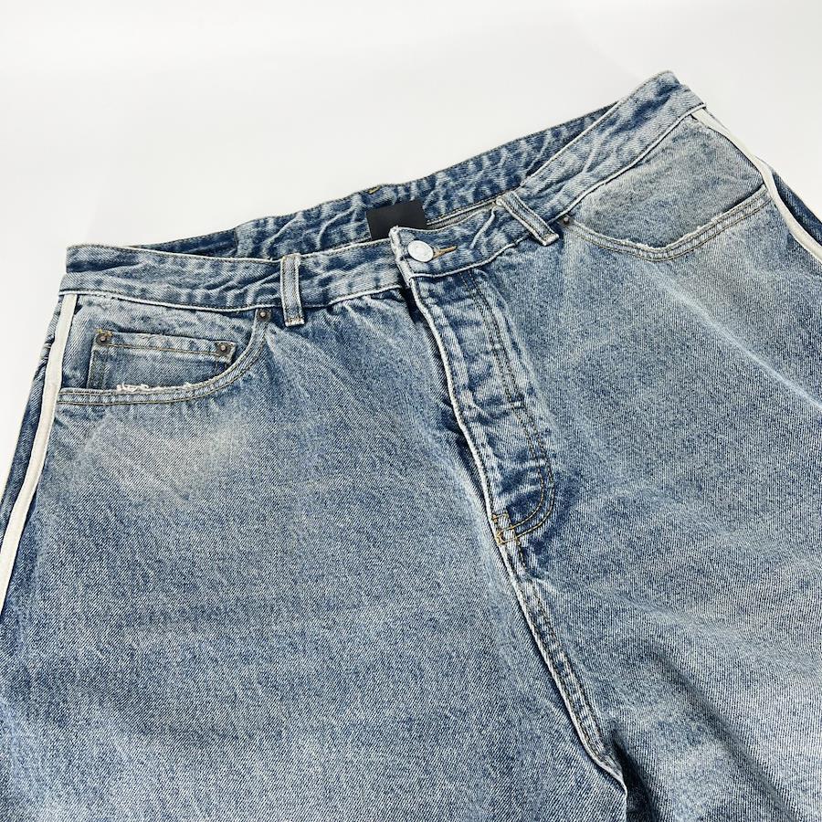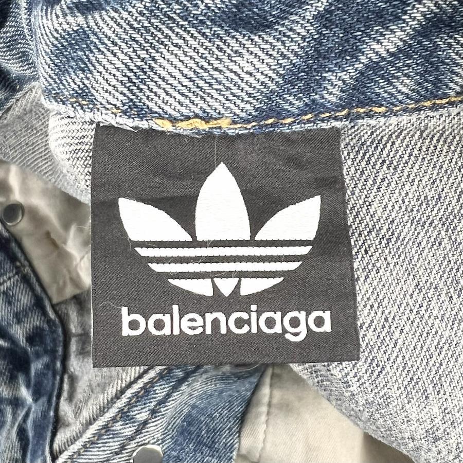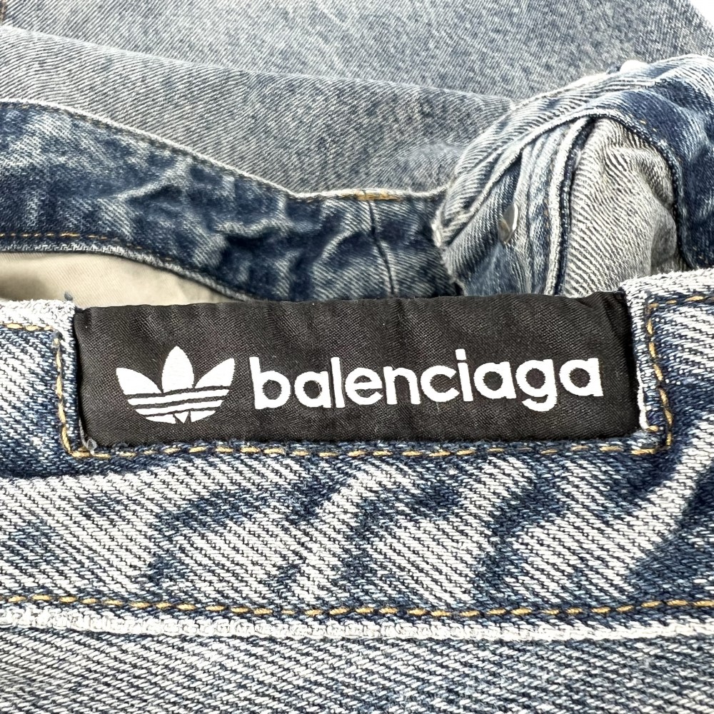 Pre-owned Balenciaga men's denim pants with side stripes and baggy adidas logo. Straight-leg pants, size M (724778), indigo with silver hardware and cotton. Perfect for all seasons.