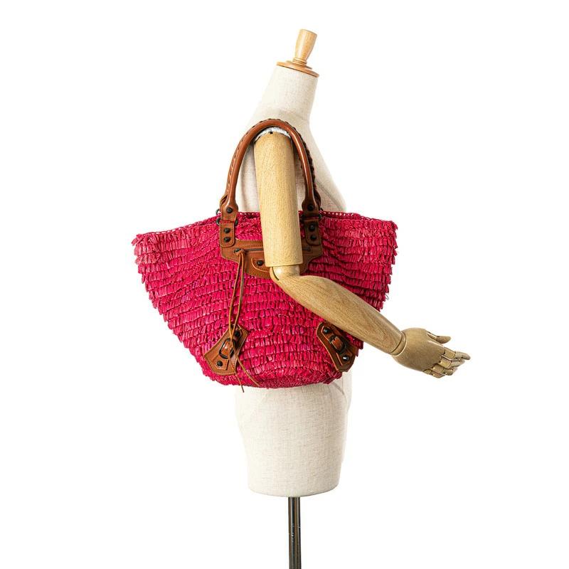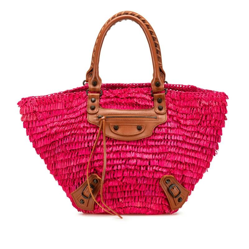 Pre-owned Balenciaga handbag, basket bag 286990, pink and brown raffia and leather. Women's.