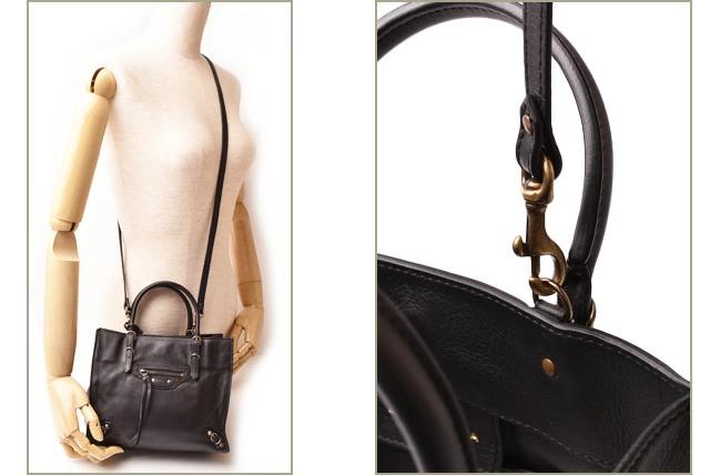 バレンシアガより、ペーパーミニです。スタッズが印象的です。小ぶりなコンパクトサイズで、ちょとしたお出かけに最適です!大変手触りの良い、柔らかなレザーで、高級感があります。取り外しが可能な、ストラップも付いており、荷物が多くなっても安心の設計です。