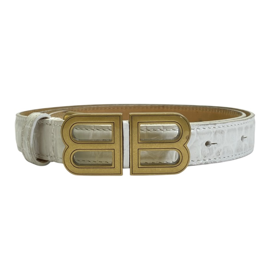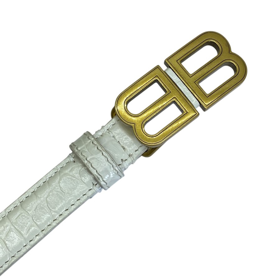 【ブランド】BALENCIAGA バレンシアガ【商品名】クロコエンボスレザーベルト【商品番号】673518【カラー】ホワイト/ゴールド【サイズ】全長:約91cm(バックル除く) ウエスト:約31cm〜75cm(20穴調節可能)ベルト幅:約2cm【素材】クロコ エンボスレザー【付属品】箱【ランク】AB(一般中古~良品)【コメント】外側:金具小傷/薄汚れ/スレ(小) 内側:スレ/薄汚れ(小)【管理番号】0422a0936o商品情報