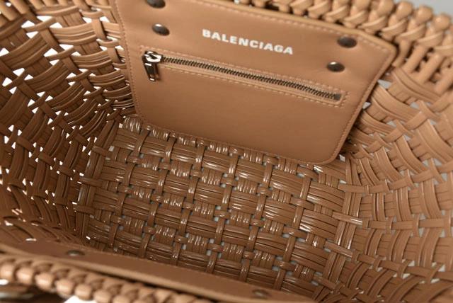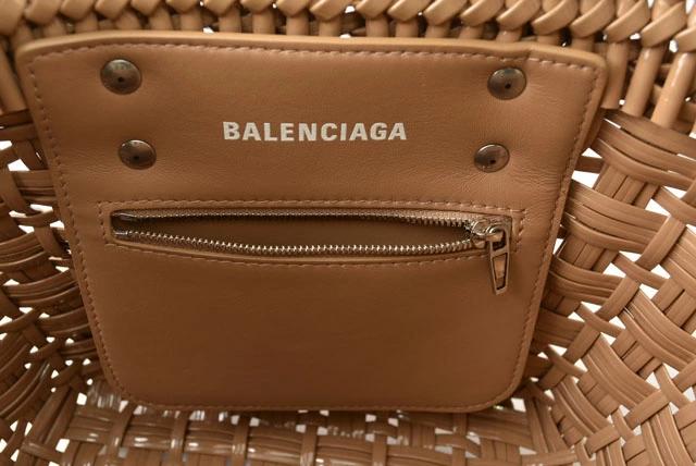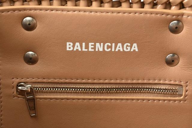 バレンシアガより、ビストロXS バッグです。ペットボトル、スマホ、長財布など収納でき、ちょとしたお出かけに最適です!取り外しが可能な、ストラップも付いており、荷物が多くなっても安心の設計です。コーティングを施したフェイクレザーを編み込み、かごバッグ風に仕上げたデザインです。