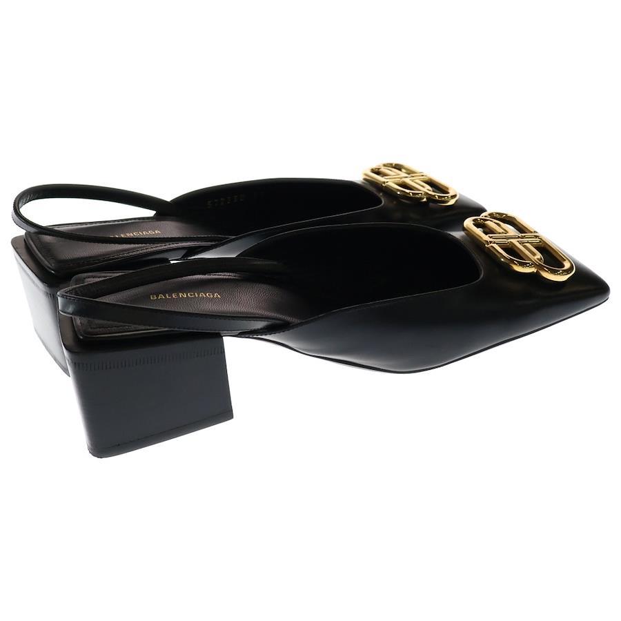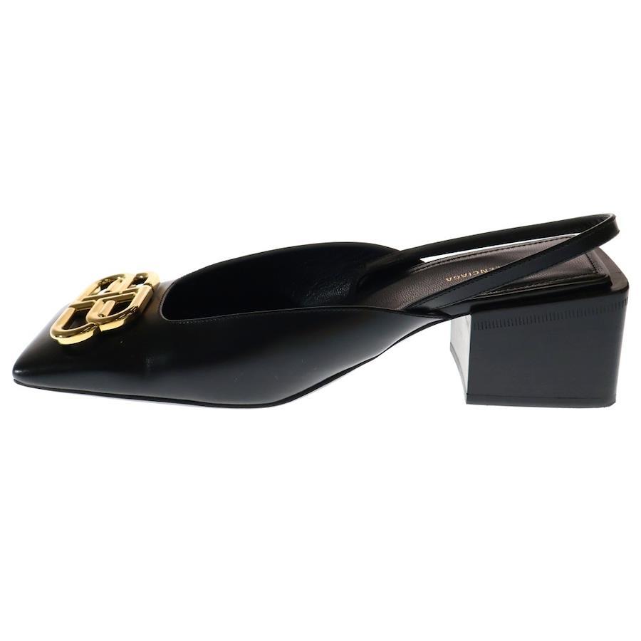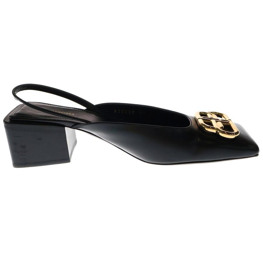 [モデル]19AW Double Square BB Slg ダブル BB スクエアトゥ レザー ヒール パンプス ブラック 579338 レディース