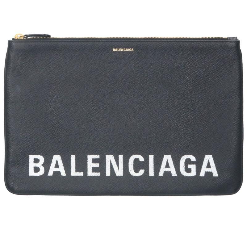 Balenciaga BALENCIAGA 529313 Logo Print Leather Clutch Bag (Black) [109052] [BS99] [Accessory] [Pre-owned] bb396#rinkan*B