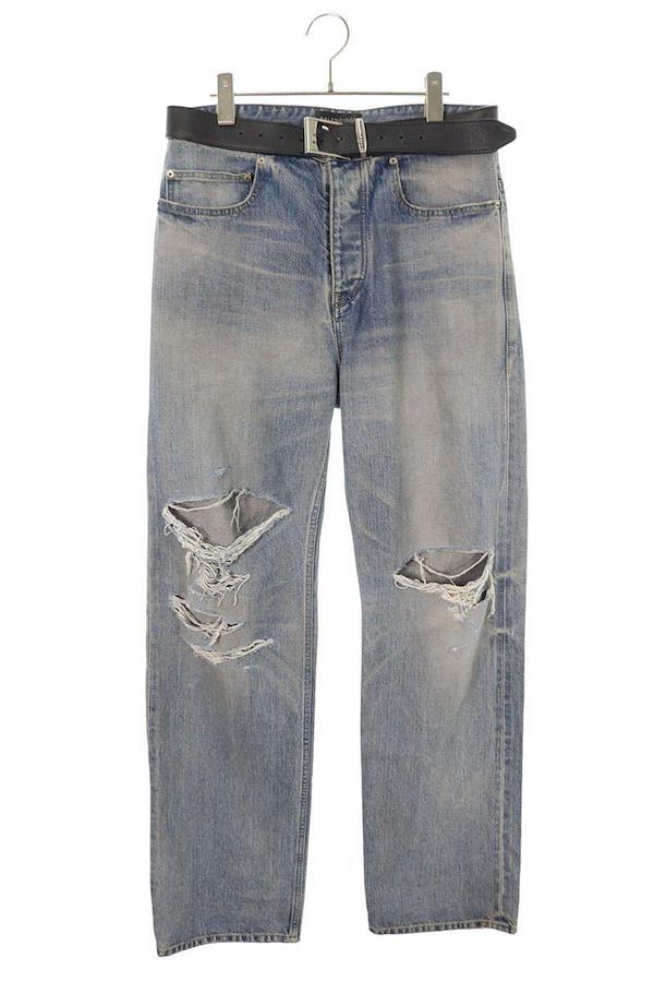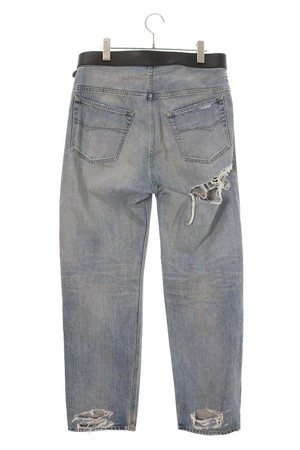 ランク:A (使用感が少ない商品)状態備考:全体的に擦れや毛羽立ちがありブランド:バレンシアガサイズ:-色:インディゴ実寸:ウエスト幅41cm 股上32cm ワタリ幅32cm 股下84cm 裾幅20cm重さ:-素材:(本体) コットン (皮革部分) 牛革付属品:なしその他特徴:ボタンフライデザインです管理番号:10831-251003-0007