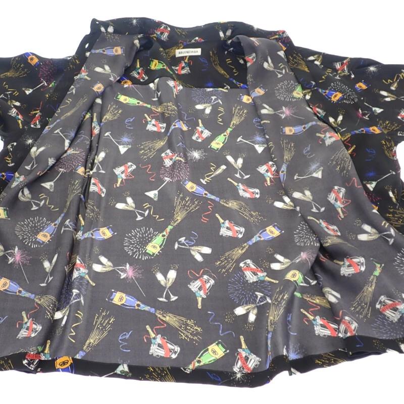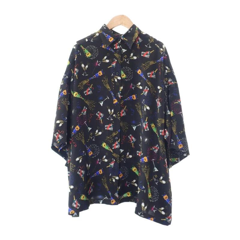 Balenciaga Celebration Print Short Sleeve Shirt, Size 36, Silk, Black, Men's, Pre-owned, Grade A