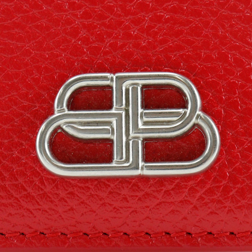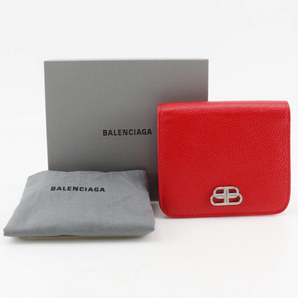 Balenciaga BB Logo Bifold Wallet 601474, Made in Italy, Red Leather, Snap Buttons, BB Logo, Women's, Pre-owned, A-Rank
