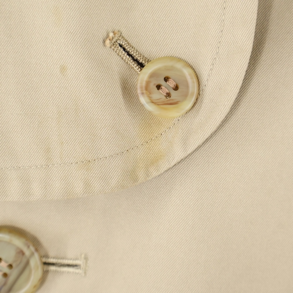 ■商品情報[商品番号]3425I240006[ブランド]BURBERRYS(バーバリーズ)[モデル]ライナー付 トレンチコート ベージュ[サイズ]平置き採寸 着丈:105センチ 身幅:54センチ 裄丈:79センチ表記サイズ:92■状態・コンディション[状態ランク]ランク B使用感有り所々にシミ汚れ有り全体的にスレ/毛羽立ち有り左ポケット内側に刺繍有り袖ベルト部分に劣化によるダメージ有り