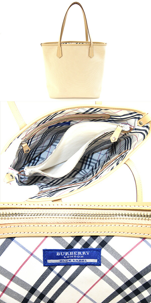 バーバリーブルーレーベルトートバッグイエローベージュキャンバスレザー中古ショルダー肩掛けチェックレディースBURBERRYBLUELABEL