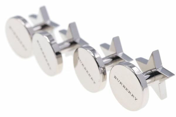 バーバリーカフスセットスターモチーフカフリンクスシルバーブラックメタルエナメル中古カフスボタンシャツメンズビジネス男性紳士アクセサリー星3セットミニBURBERRY