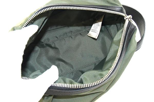 | 状態 | 外側:多少型崩れあり。ナイロン部分に薄汚れあり。レザーパイピングにスレ・色落ちあり、底面に薄スレ汚れ・薄キズあり。 内側:- 金具:クスミ多少あり。 |