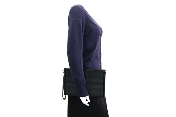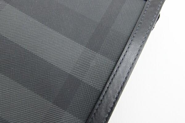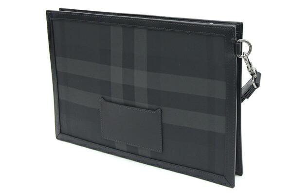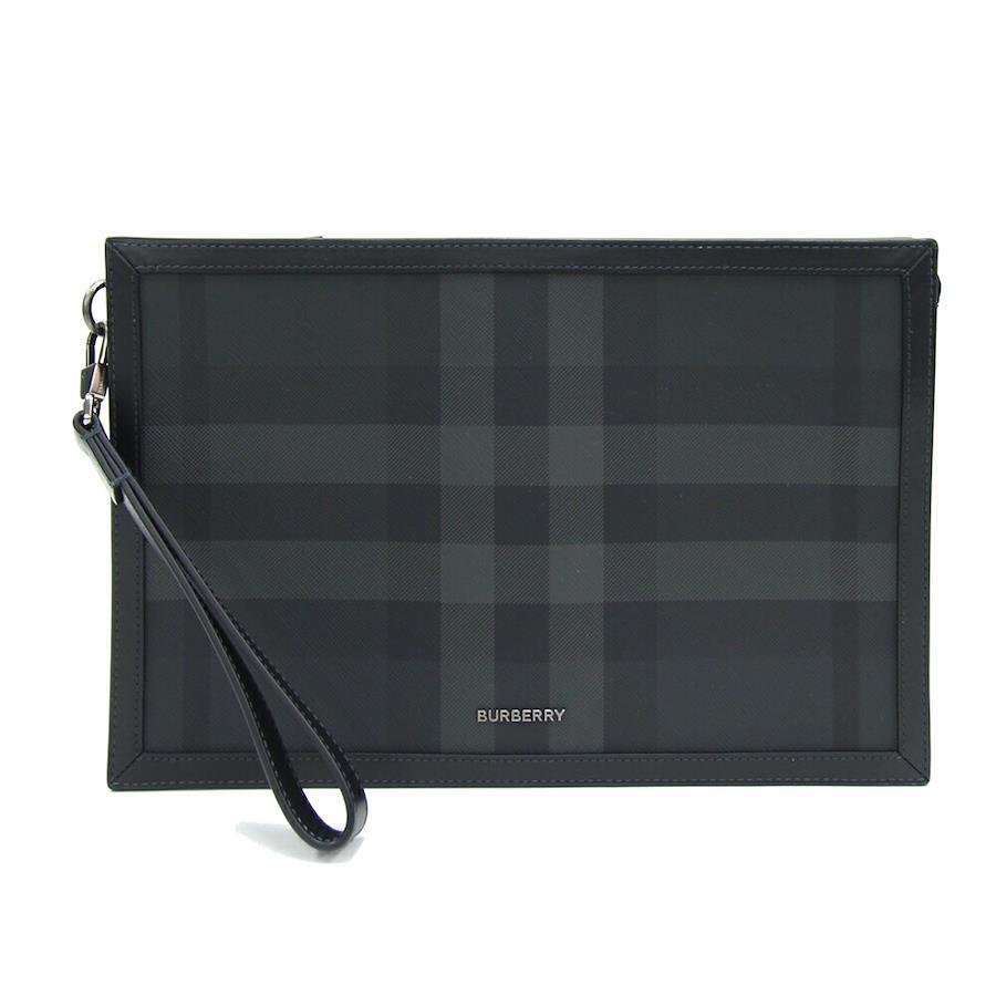 バーバリークラッチバッグ8070205グレーブラックPVCレザー中古セカンドバッグチェックロゴメンズ男性BURBERRY