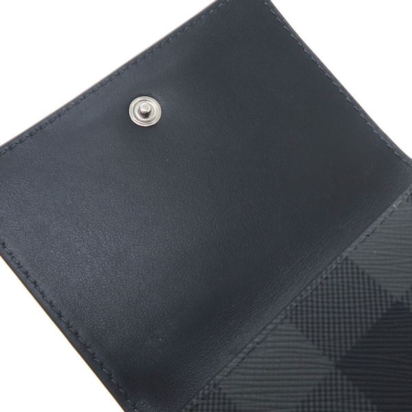 バーバリーのコンパクトウォレットのご紹介です。正面側はスナップボタン式の小銭入れになっています。背面側もスナップボタン式で、カードポケットが6つ、札入れが1つございます。落ち着きのあるシックなデザインのお財布で年齢やシーンを問わず、長くお使いいただけます。状態は、本体の型崩れ、表面の薄汚れ・擦れ、角や縁の擦れ、金具部の擦れ、中のスナップボタン跡・薄汚れ・擦れがございますがまだまだお使いいただけます。