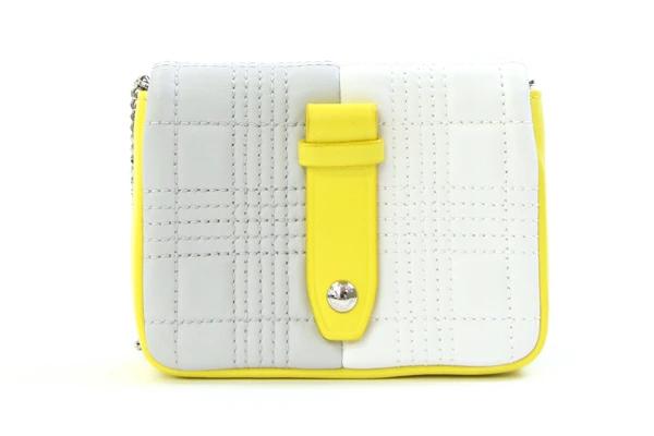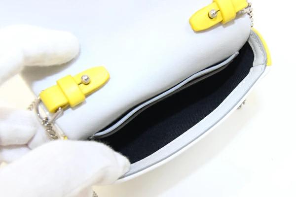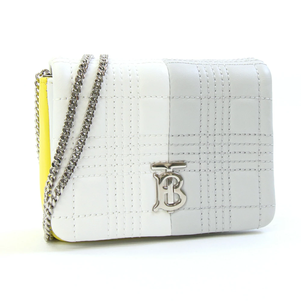 Pre-owned Burberry Laura Shoulder Bag (8030567) in White, Light Gray, and Yellow Leather. Features a chain shoulder pouch, TB logo, and a women's BURBERRY design.