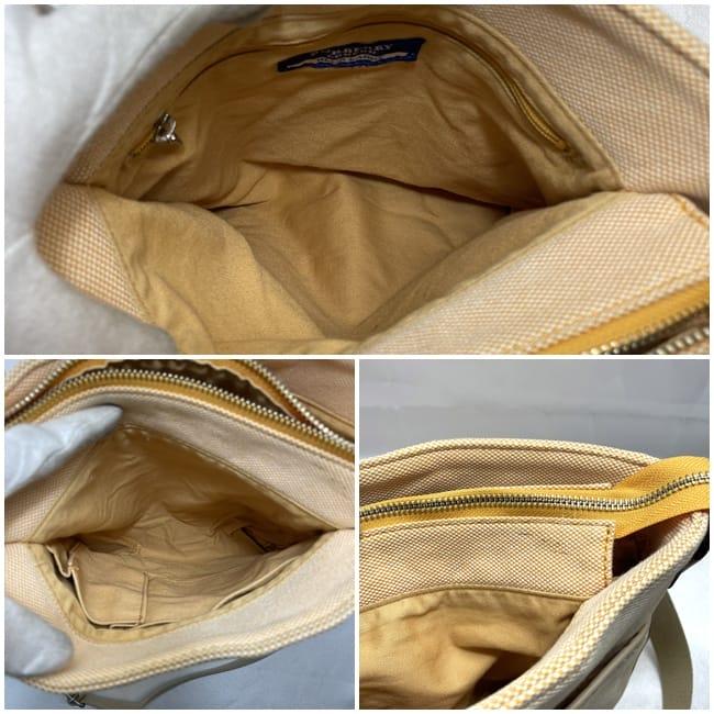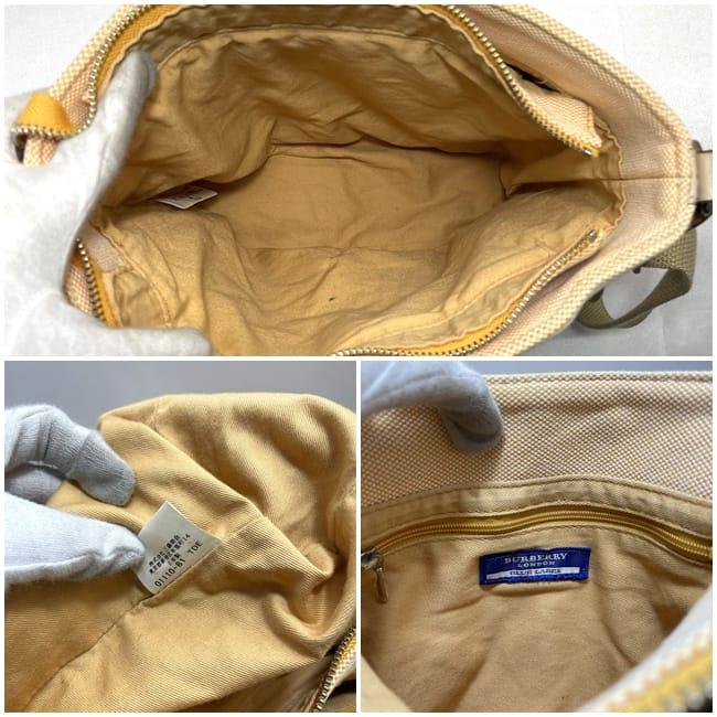 バーバリー ショルダーバッグ ec-22761 オレンジ ベージュ ブルーレーベル 美品 キャンバス 中古 BURBERRY バケットバッグ ポケット豊富 大容量 キャンバスバッグ ヴィンテージ 定番 人気 カジュアル レディース メンズ 大きい 高級感 ブランド 本物 鑑定済み