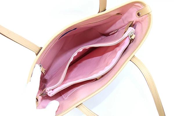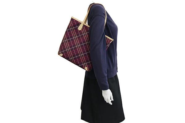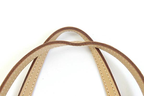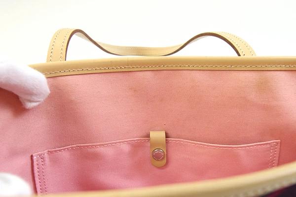 | 状態 | 外側:レザー部分に薄汚れあり。ハンドル一部に強いクセあり。 内側:スレ、薄汚れ、上部に黄ばみあり。 金具:スレ、クスミあり。 |