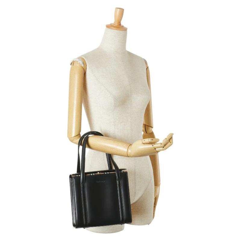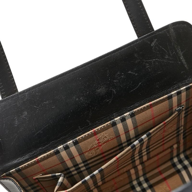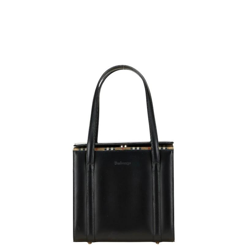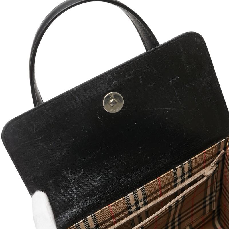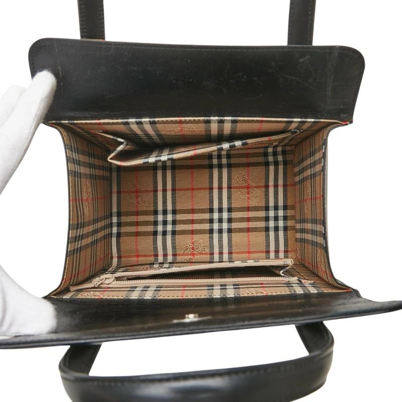 Pre-owned Burberry Nova Check Shadow Horse Square Handbag in Black Leather. Women's.