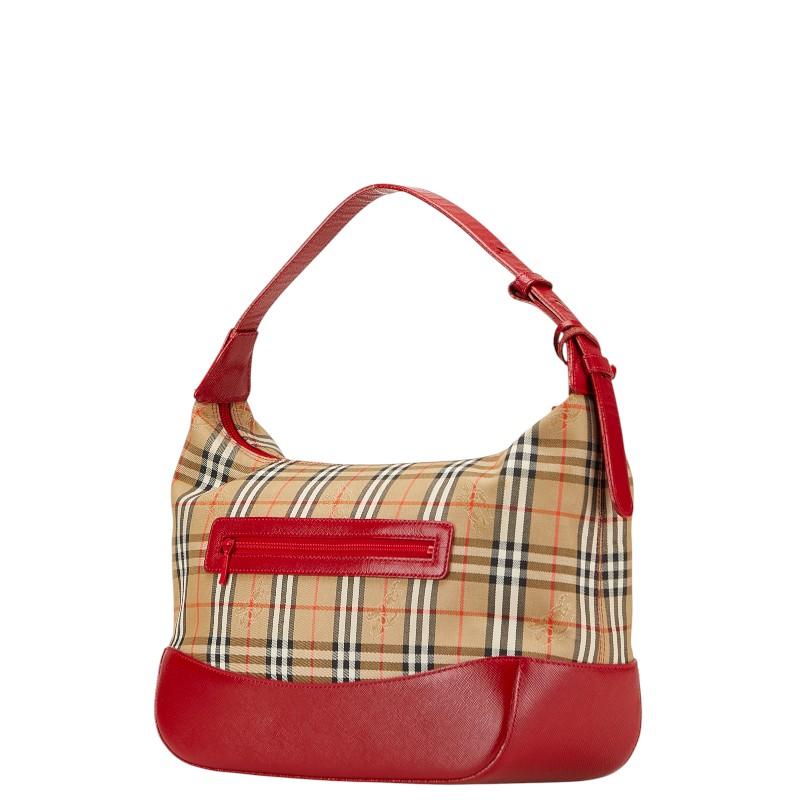 Burberry Nova Check Shadow Horse One-Shoulder Bag in Red and Multicolor Leather and Canvas, Women's [1-0209608]