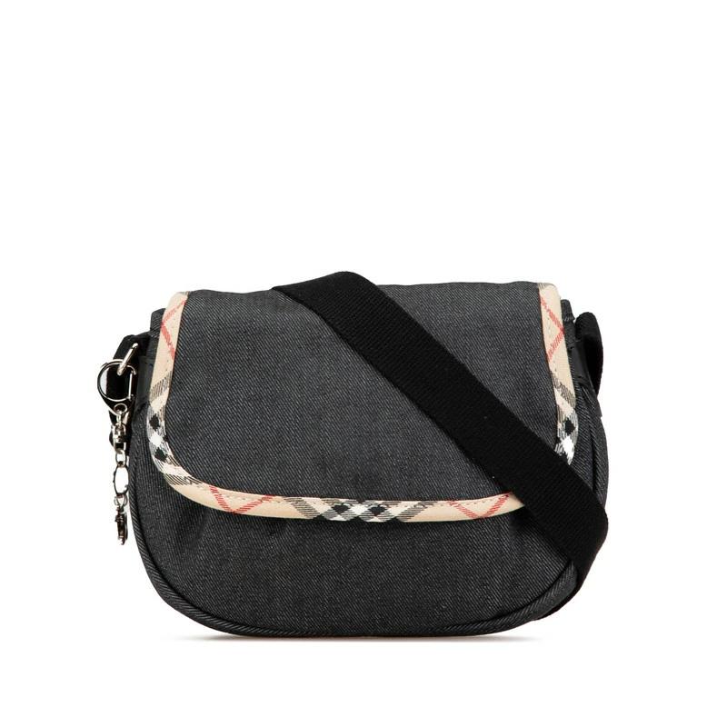 バーバリー ノバチェック 斜め掛け ショルダーバッグ ブラック ベージュ デニム レディース BURBERRY 【中古】