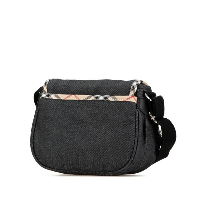 Pre-owned Burberry Nova Check Crossbody Shoulder Bag in Black and Beige Denim.