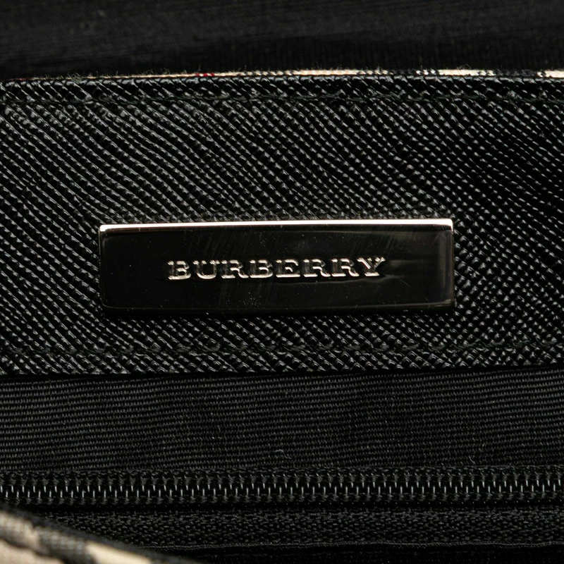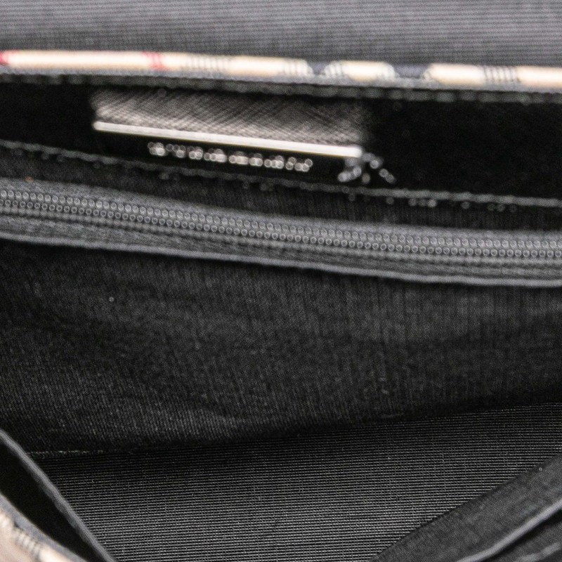 - バーバリー ノバチェック 斜め掛け ショルダーバッグ ベージュ ブラック キャンバス レザー レディース BURBERRY 【中古】