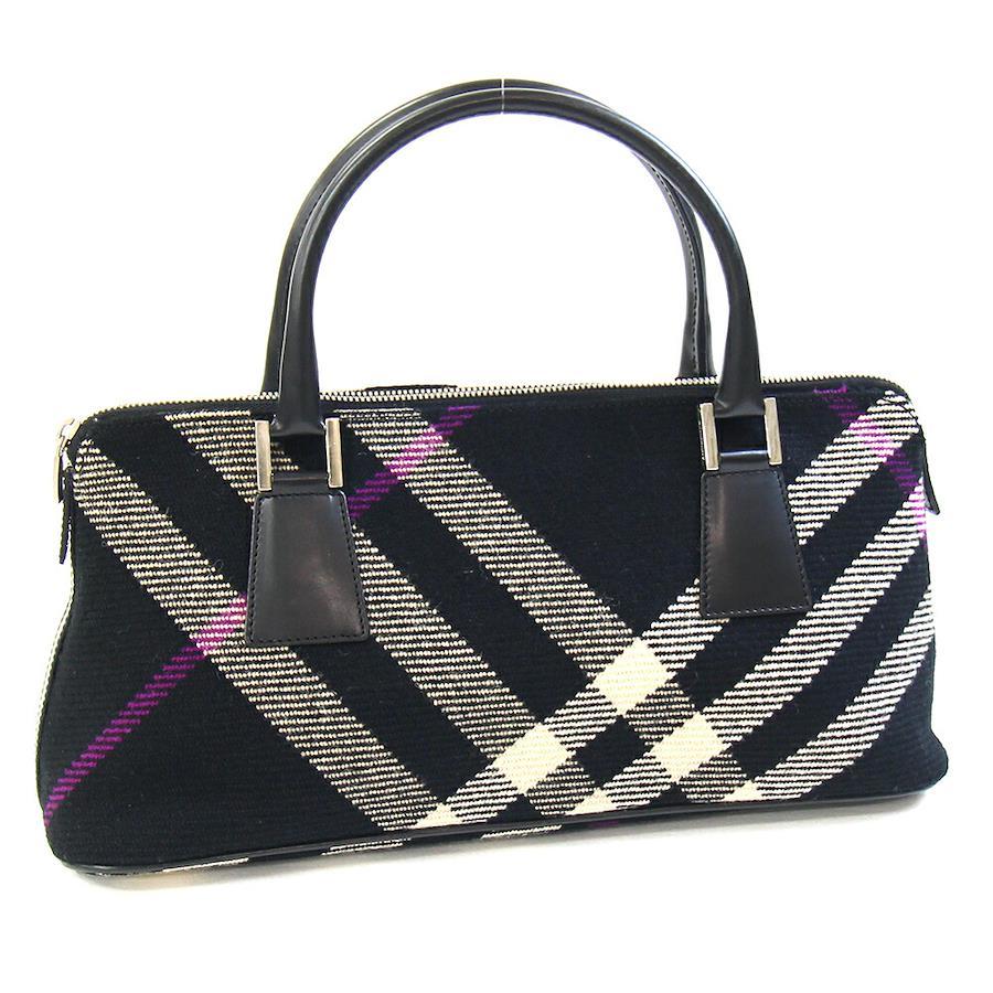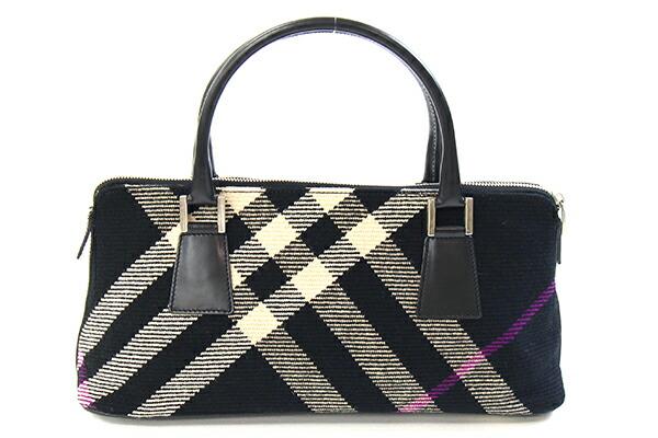 バーバリーハンドバッグブラックベージュウールレザー中古チェック鞄レディース女性BURBERRY