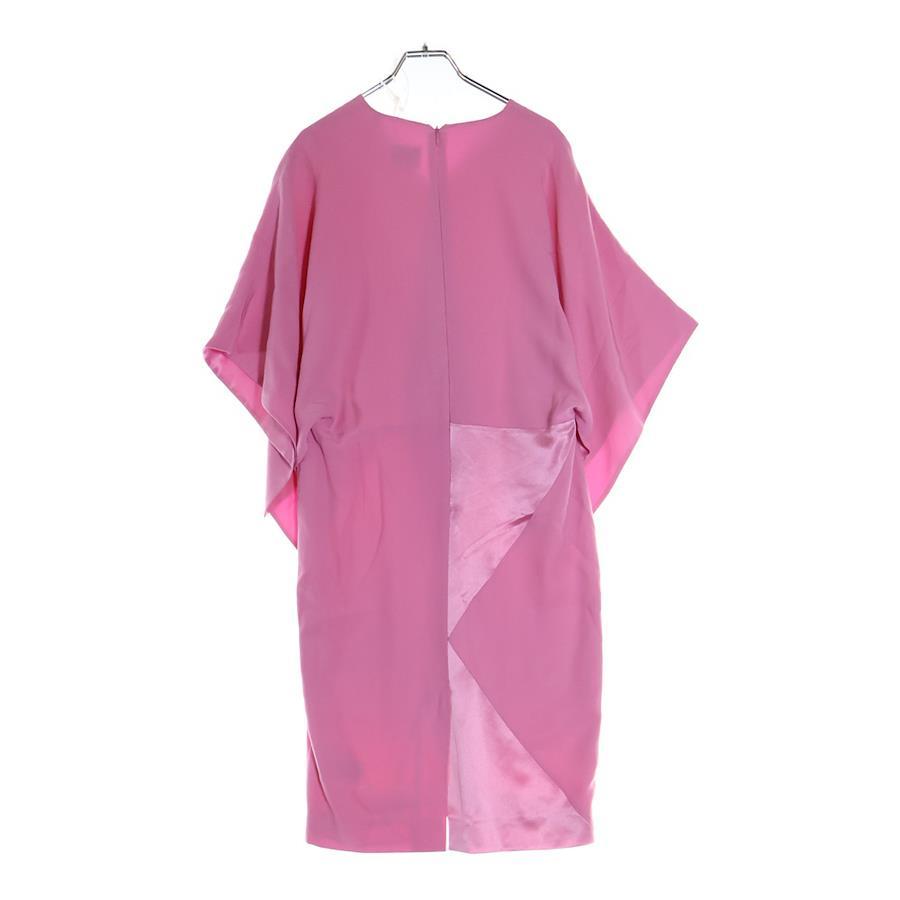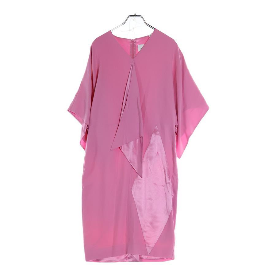 [モデル]バックジップ Vネック レディース シルク ワンピース ピンク