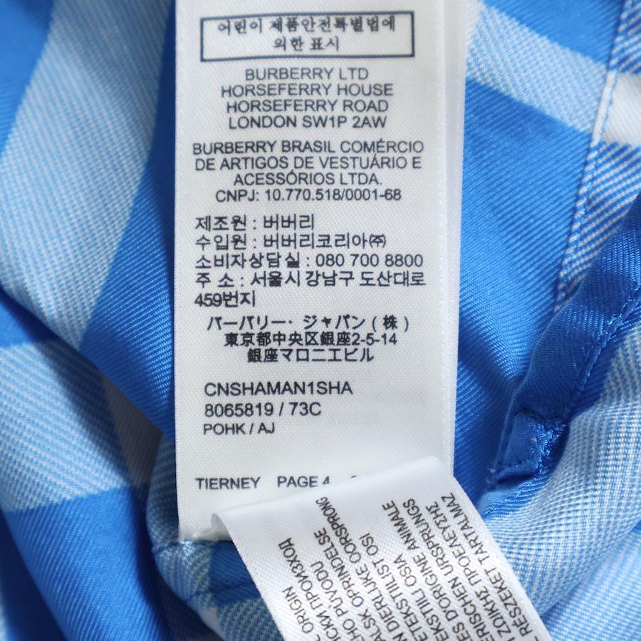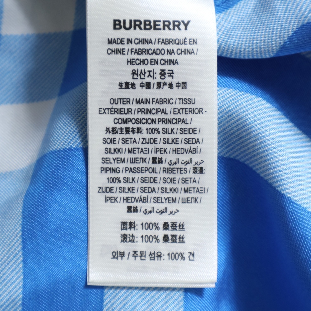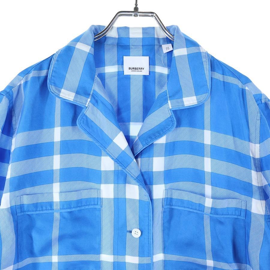 [モデル]バーバリーチェック柄 シルク半袖シャツ ブルー 8065819