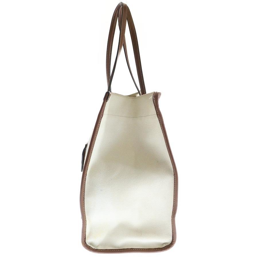 [モデル]フレヤトートバッグ ハンドバッグ ミディアム アイボリー×ブラウン レザー×キャンバス ゴールド金具