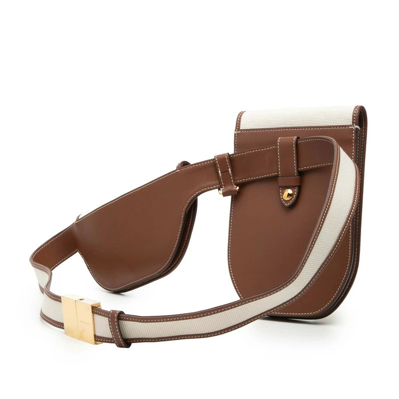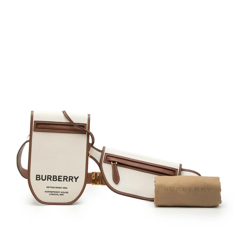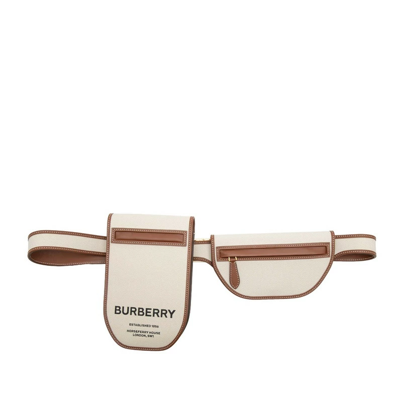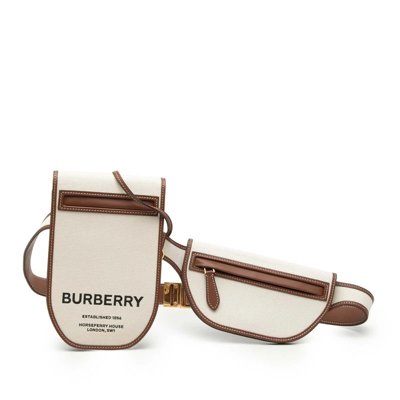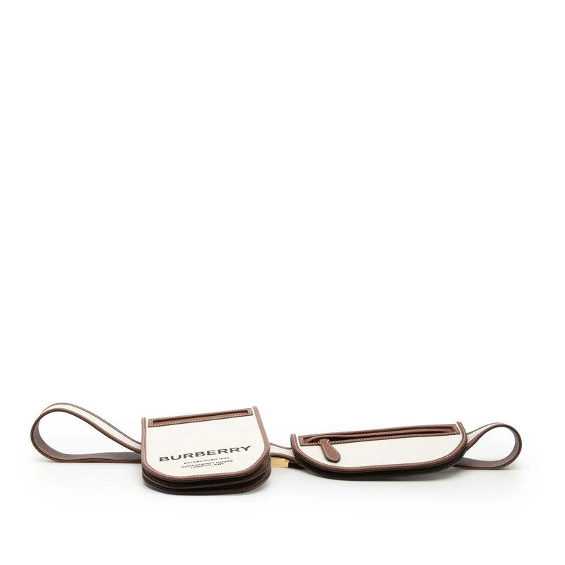 Burberry Horseferry Logo Belt Bag/Body Bag, 2-Way, 8039534, White/Brown Canvas/Leather, Women's, BURBERRY [Pre-owned]