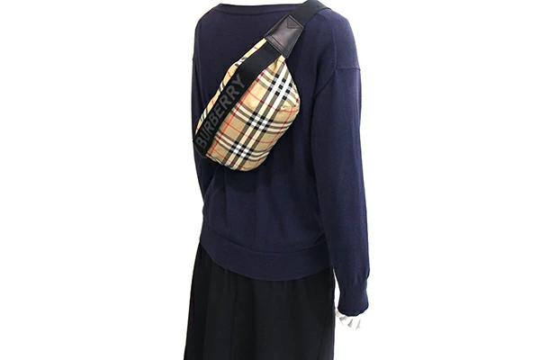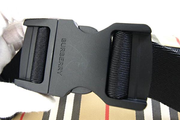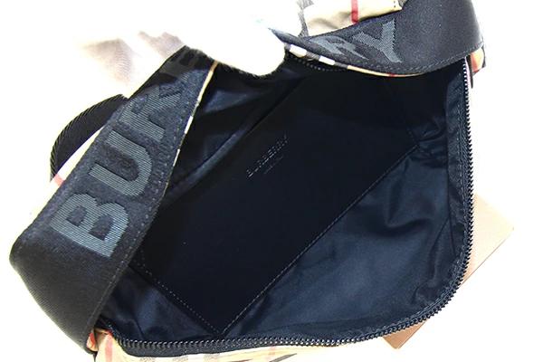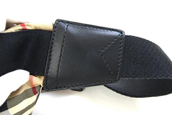 バーバリーボディバッグ8014715ベージュブラックナイロンレザー中古チェックベルトバッグウエストバッグショルダー斜め掛けBURBERRY