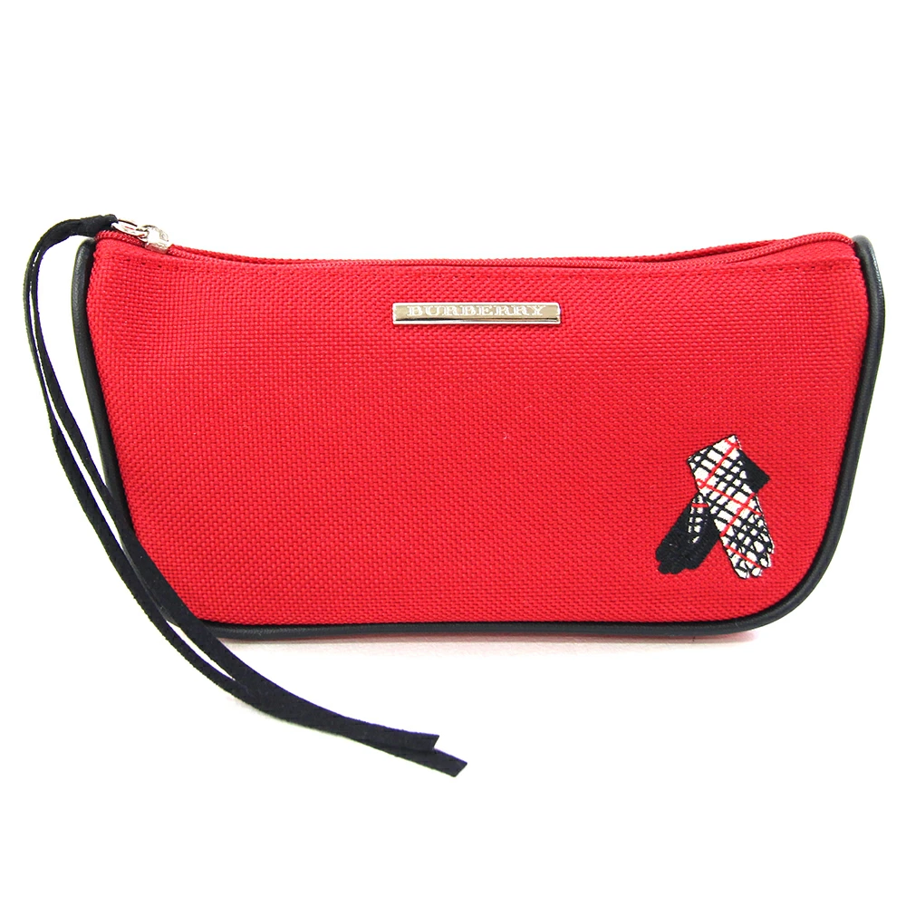 Pre-owned Burberry pouch in red and black canvas and leather. Perfect for cosmetics and makeup. Travel pouch with logo. Women's. Burberry.