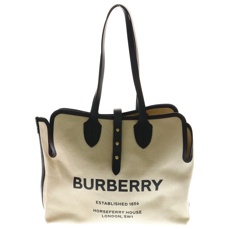 [モデル]ロゴ トートバッグ ハンドバッグ ベージュ キャンバス×レザー