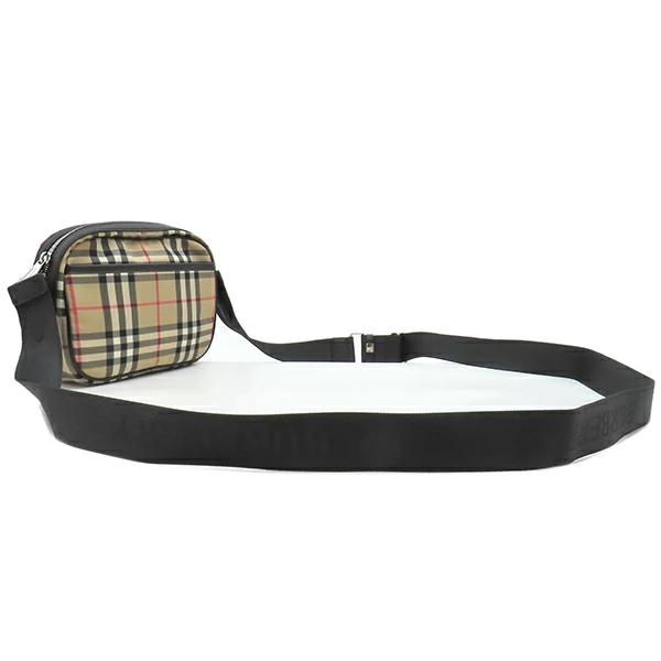 ▲クリックで拡大されますバーバリー BURBERRY ショルダーバッグ ノバチェック クロスボディ ナイロン レザー ベージュ×ブラック 黒 斜め掛け シルバー金具 8010152 レディース定番 人気 美品 【中古】