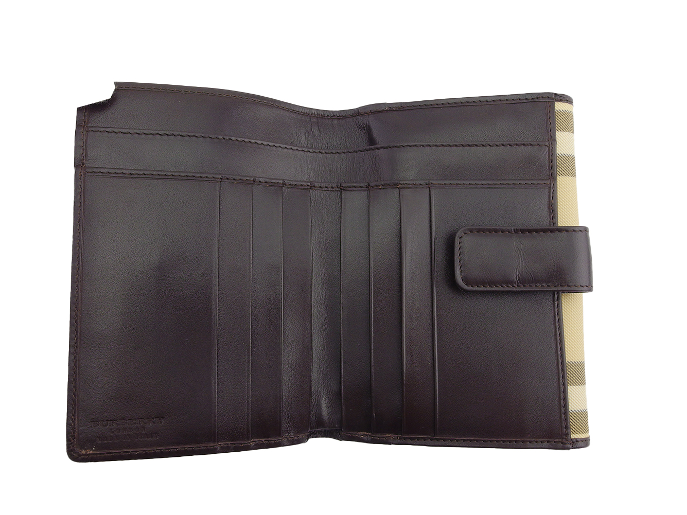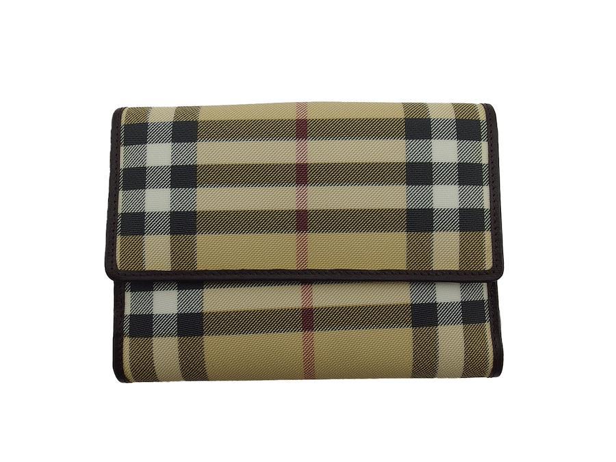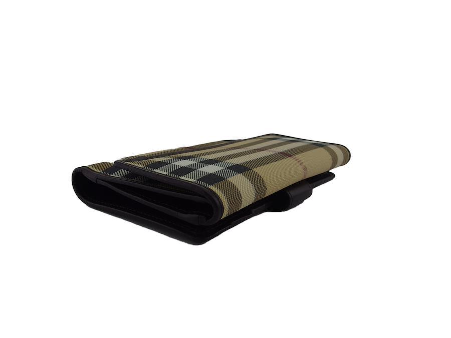 Pre-owned Burberry Nova Check bifold wallet in beige, black, and brown. Women's.