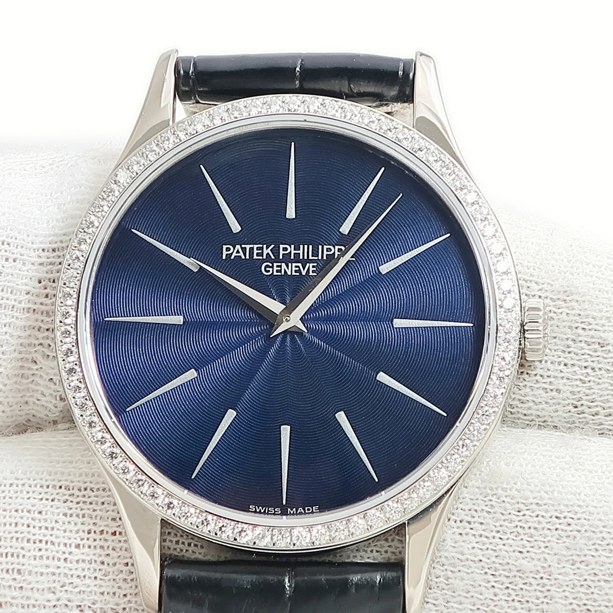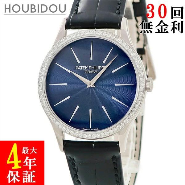 パテックフィリップ PATEK PHILIPPE カラトラバ 4896G-001 K18WG無垢 純正ダイヤ ナイトブルー バー ギヨシェ レディース 腕時計手巻き ブルー 【中古】【店頭受取不可】