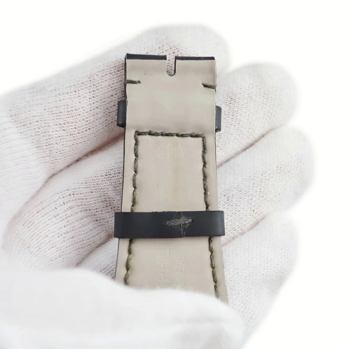 パテックフィリップ PATEK PHILIPPE 腕時計パーツ ノーチラス用 カーフベルト カーフ ブラック 純正 替え レザー バンド ストラップ 予備 交換 スペア 25mm ブラック 黒 - メンズ 【中古】 管理コード240500481073 コンディション詳細:中古品 中古AB品 (表面にスレやテカリ、裏面に変色やバックル跡、黒ずみやクセりなど全体的に使用感は御座いますが、まだ使用いただけるお品です。)