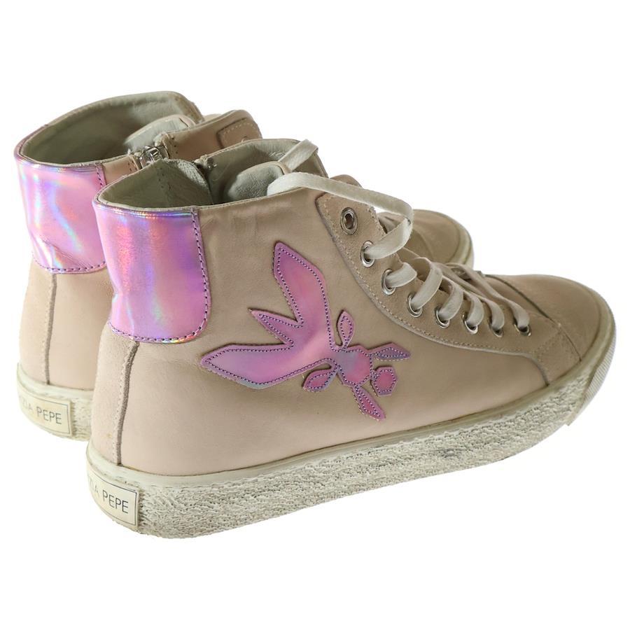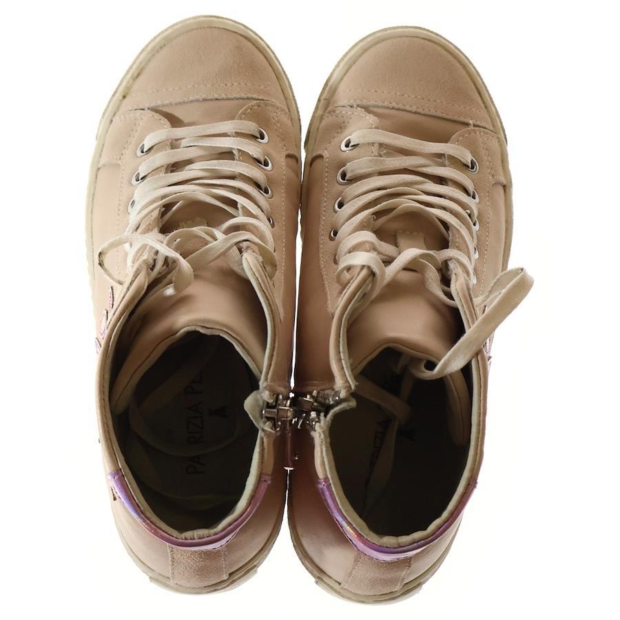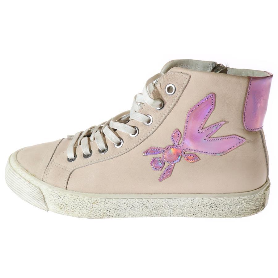 [モデル]オーロラ パッチ サイドジップ レースアップ レザー ハイカットシューズ スニーカー ピンク レディース