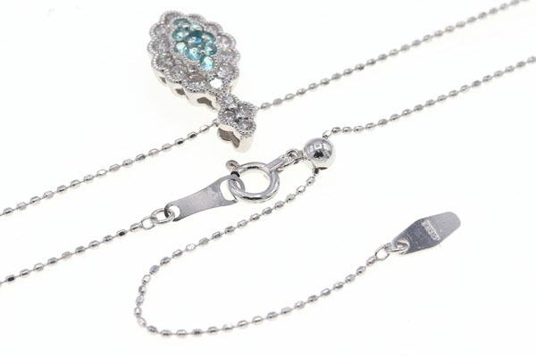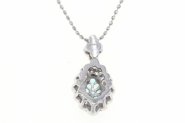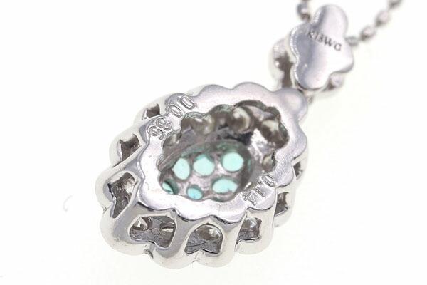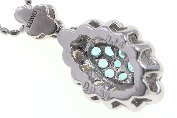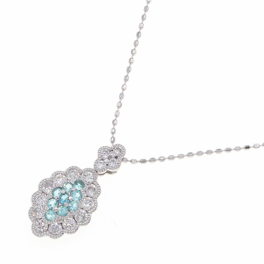 パライバトルマリンダイヤモンドネックレスPT0.14ctD0.35ctK18WG中古カットボールチェーンペンダントチョーカー宝石ジュエリーアクセサリーレディース女性婦人色石カラーストーンParaibaTourmalineDiamond