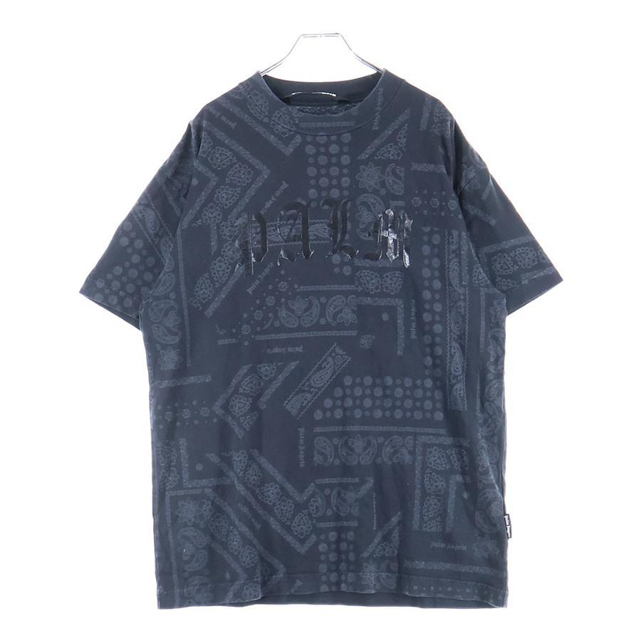 [モデル]ペイズリー柄 フロントロゴ半袖Tシャツ ブラック PMAA001E20JER008