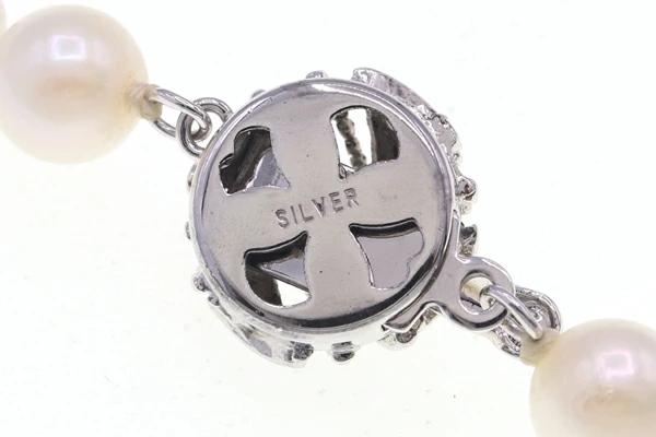 Pre-owned 6-6.5mm Sterling Silver Pearl Necklace with Natural Stones for Women.