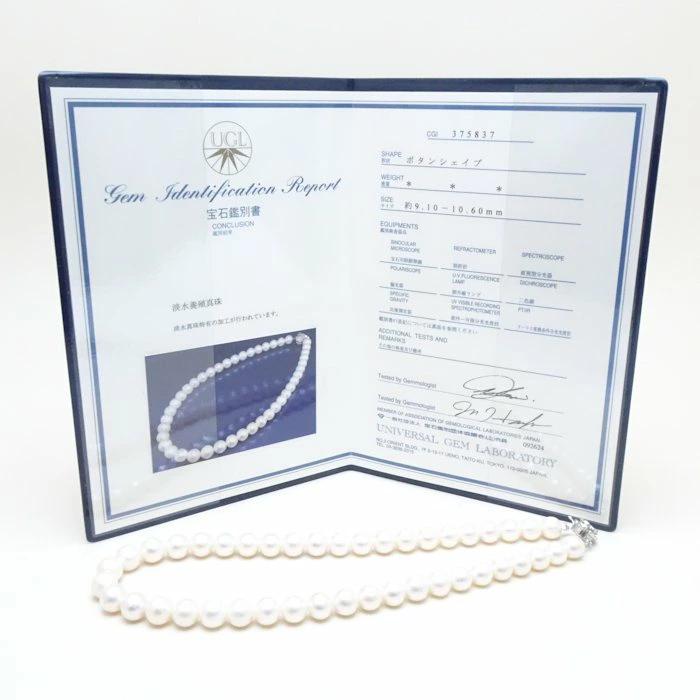 | | 重量 | 57.8g | | 付属品 | 鑑別書(UGL発行) | | 備考 | 淡水真珠特有の加工加工が行われています。