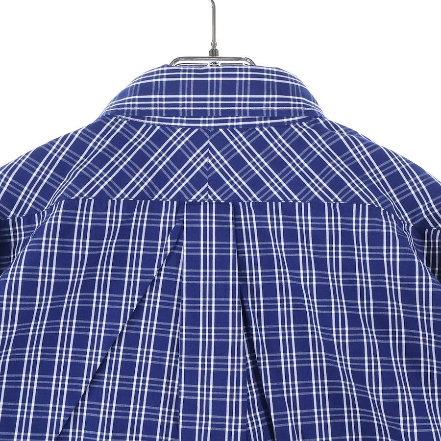 [モデル]CHECK BD SHIRT ワッペン ロゴ チェック 長袖 シャツ ブルー HM29SH012