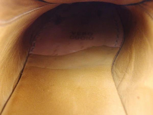 | コンディション | 全体の状態詳細:大きなダメージもなく比較的良いコンディションで、まだまだ十分ご使用いただけます。外側:レザー(両足とも甲部分にシワ、内側に若干の傷、左足外側に1cmほどの縦向き傷)、アウトソール(両足とも靴底ゴム踵部分若干のすり減り、傷&汚れ)あり。内側:インソール(汚れ、若干の変色)、内張レザー(右足かかと部分にシミ汚れ)あり。その他、中古品のため 目立たない傷・汚れ などの一般的使用感がございます。 |
