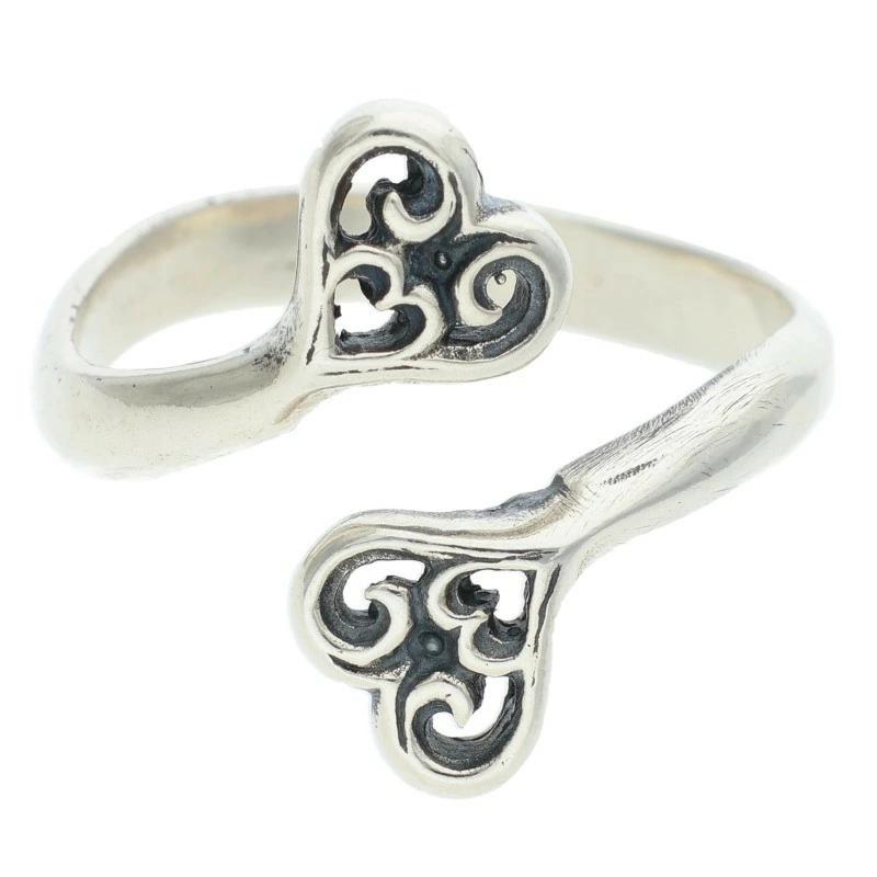 Bill Wall Leather Double Tribal Heart Free Ring, Silver, Size: 17.5