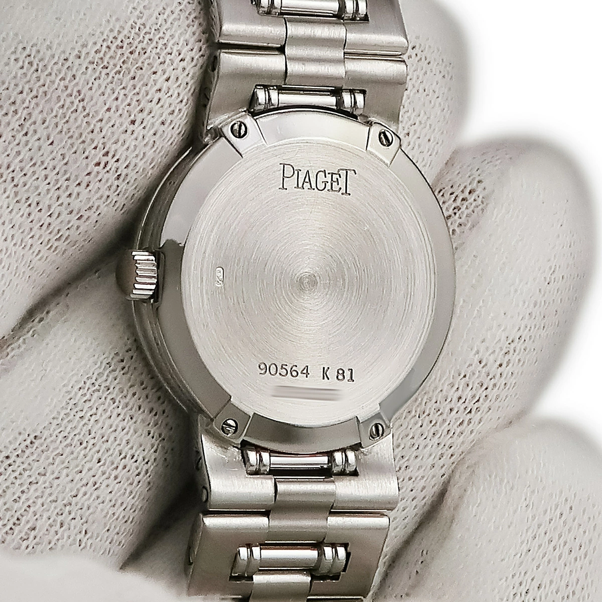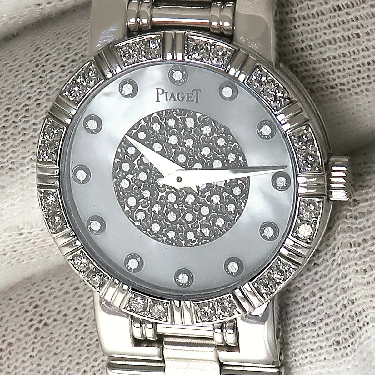 ピアジェ PIAGET ダンサー 90564K81 K18WG無垢 純正ダイヤ シェル パヴェ ラウンド レディース 腕時計手巻き シルバー 【中古】【店頭受取不可】 管理コード240500495714 (新品仕上げ済 ムーブメント点検済) (平均日差+8秒) コンディション詳細:中古美品 中古A品(バンドA) (細かなスレ、指針にスレ、ガラス面(中央部/8時方向)に僅かな点キズ、裏蓋に細かな線キズなどは御座いますが、大きなダメージは無く新品仕上げ済の綺麗なお品物です。)