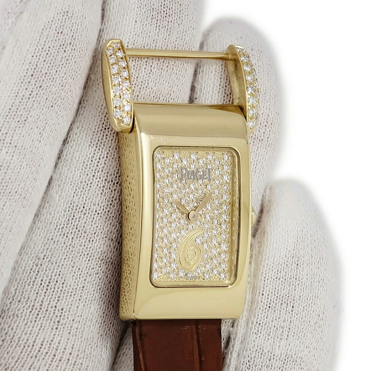 ピアジェ PIAGET ミスプロトコール パヴェ P10110 K18YG無垢 純正ダイヤ イエローゴールド レディース 腕時計クオーツ ゴールド 【中古】【店頭受取不可】