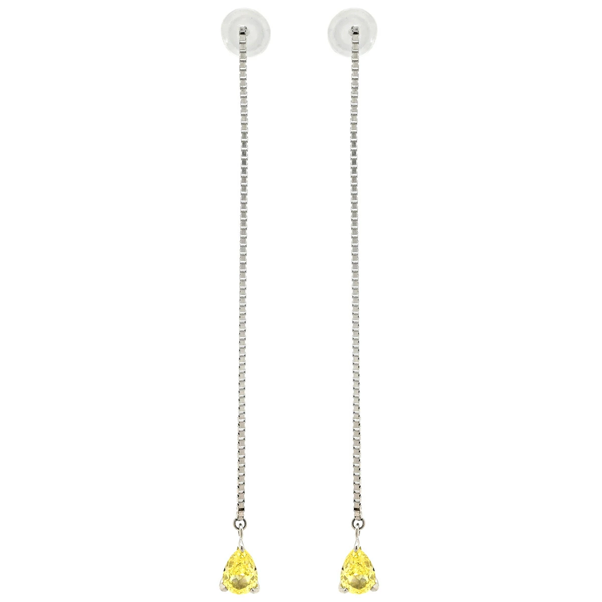 ノンブランド NON BRAND ピアス Pt950 Pt900(ポスト) ダイヤモンド イエロー×プラチナシルバー プラチナム 1P 1石 1粒 イエローダイヤ 黄色 ドロップ スイング チェーン 雫型 しずく 涙型 - レディース定番 人気 美品 【中古】