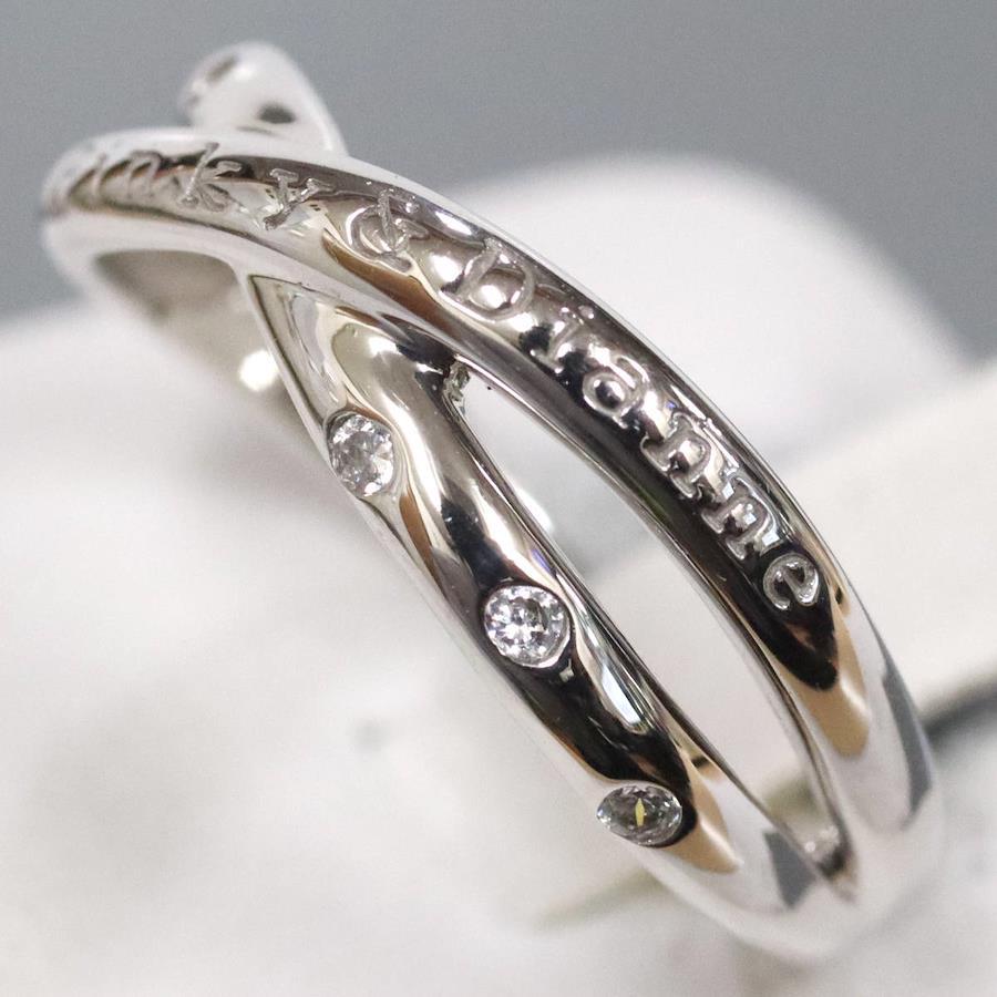 ピンキー&ダイアンの750WGリングの中古品です。クロスしたデザインのリングです。地金には小傷があります。+---+---+---+---+---+。{状態}A{素材}750(K18WG)、ホワイトサファイア{サイズ}当店計測約#12{リング幅}約2-6mm。{その他}3.5g。{付属品}なし(サービス箱をお付けします){お問合せ商品番号}26023188+---+---+---+---+---+。