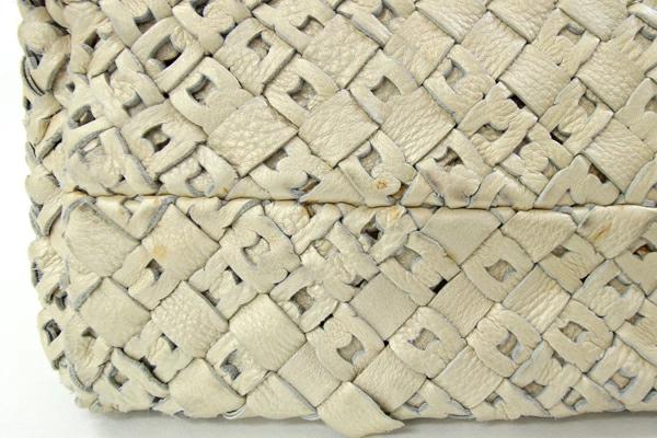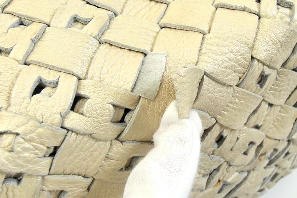 | 状態 | 外側:全体的に革が馴染み、スレ汚れ、角付近にスレによる色落ちあり。底など所々ボンド系の茶色汚れあり。下部フチに革の切れあり。 内側:スレ、スレ汚れあり。背面側の上部フチに修理跡のようなボンド汚れ・革の切れ・硬化あり。 金具:- |