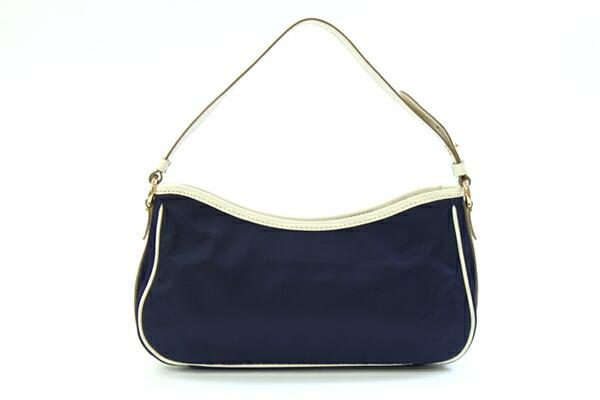 フェラガモアクセサリーポーチヴァラ21C642ネイビーアイボリーホワイトナイロンレザー中古ワンショルダーミニバッグハンドバッグリボンレディースSalvatoreFerragamo